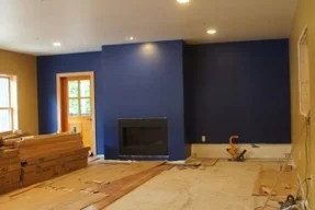 Reface the fireplace wall with stone and modify the mantle in lieu of the Clarkson standard, plain wall board facing provided.